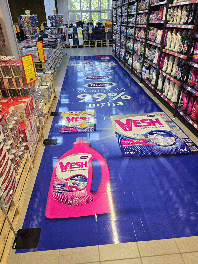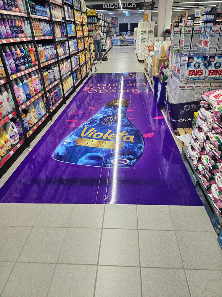Podne naljepnice se lako postavljaju na odgovarajuće pripremljene podloge, a nakon upotrebe mogu se ukloniti bez većih oštećenja površine. To ih čini vrlo praktičnim rješenjem za privremene kampanje, kratkoročne akcije i sezonske promocije.